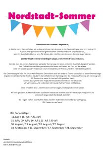 Wir sind gespannt auf einen bunten und neuen Nordstadt-Sommer. Auf ein vielfältiges Programm und eine noch längere Zeit Nordstadt-Sommer!
